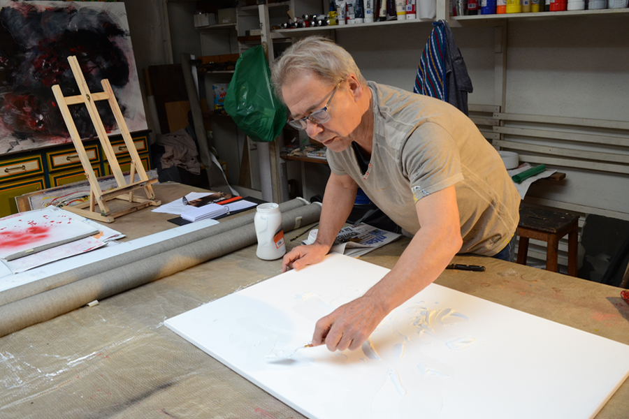 After declaiming words, it is time for depicting with brush strokes and colours. Following the terrorist attacks on 13th November 2015 in Paris, it became necessary for him to express differently. While working around the third chapter of Edward Bond’s «War Plays», entitled «Great Peace» at the theatre, he keeps creating a series of paintings.Dominique works and lives in CAEN and ANTIBES.